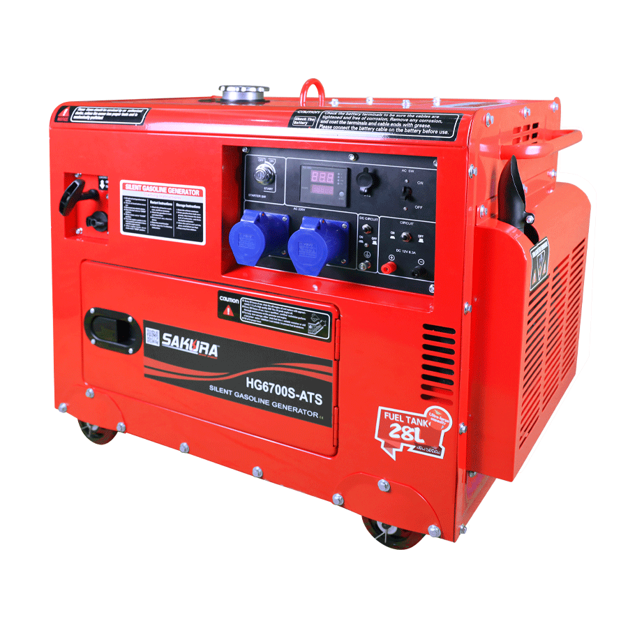 Sakura 5.5 KW soundproof petrol generator built with Honda GX390 engine. It offers precision-engineered components resulting in lower vibration, and a Ball Bearing-supported Crankshaft for greater stability. It also offers an improved piston design and a heavy-duty balancer shaft to deliver smooth performance.