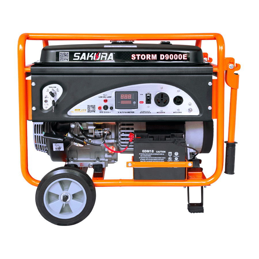The Storm D9000E-DF LPG generator by Sakura Power proves the power up to 8500 watts. This LPG generator provides enough power to light up your entire house and any other electronic appliances. This lp gas generator is well-suited for homes and shops, educational institutes, business showrooms, and shopping stores.